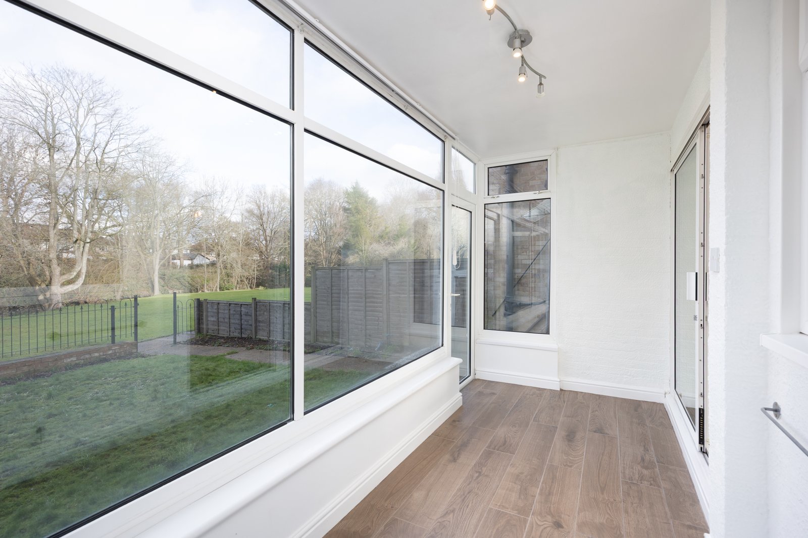 The well-appointed dual-aspect reception room is ideal for entertaining guests or enjoying quiet evenings at home. A conservatory extends the living space, allowing natural light to flood in. It offers a serene spot to unwind while overlooking the private and communal gardens.