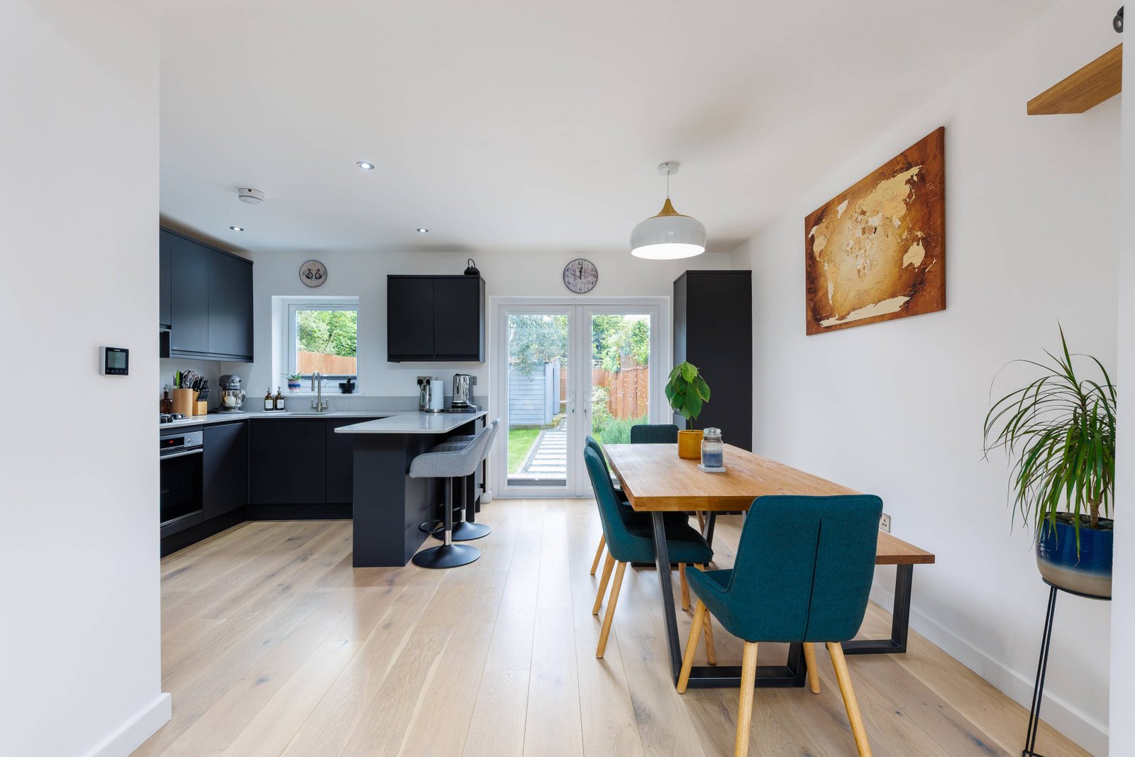 With two well-appointed bathrooms, a convenient downstairs cloakroom and generous storage, this home is designed for modern family living. The tasteful use of wood flooring throughout adds warmth and elegance to the space.
