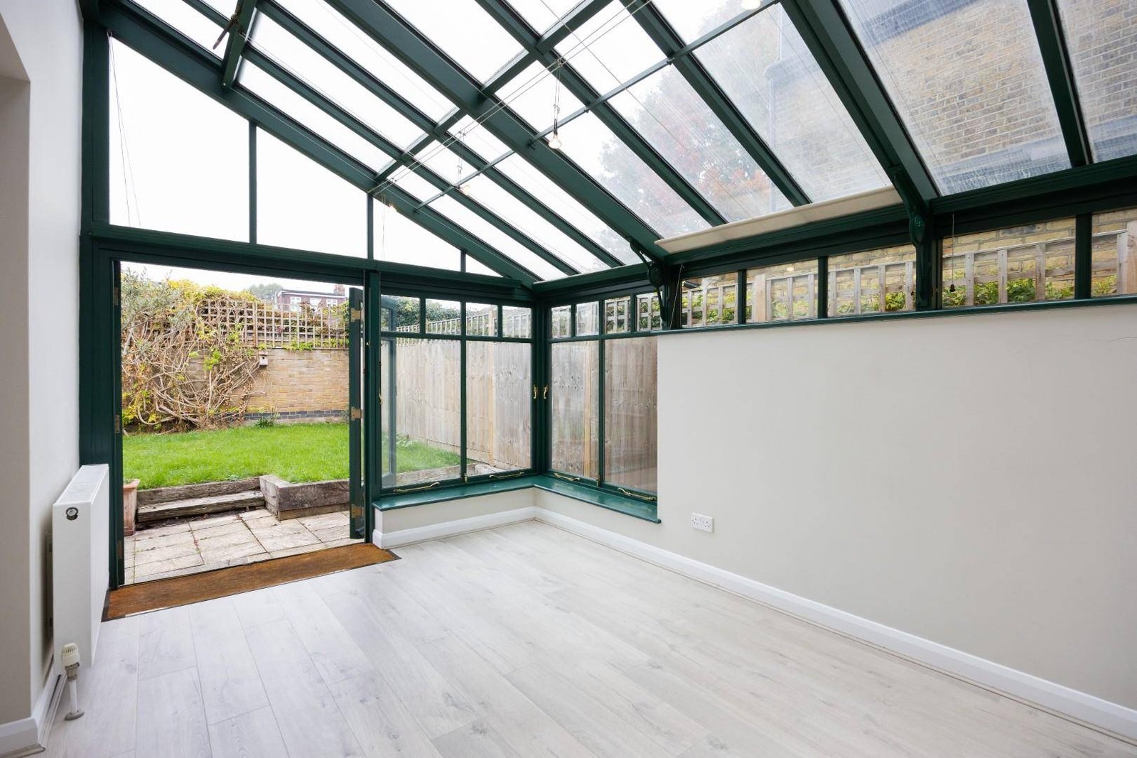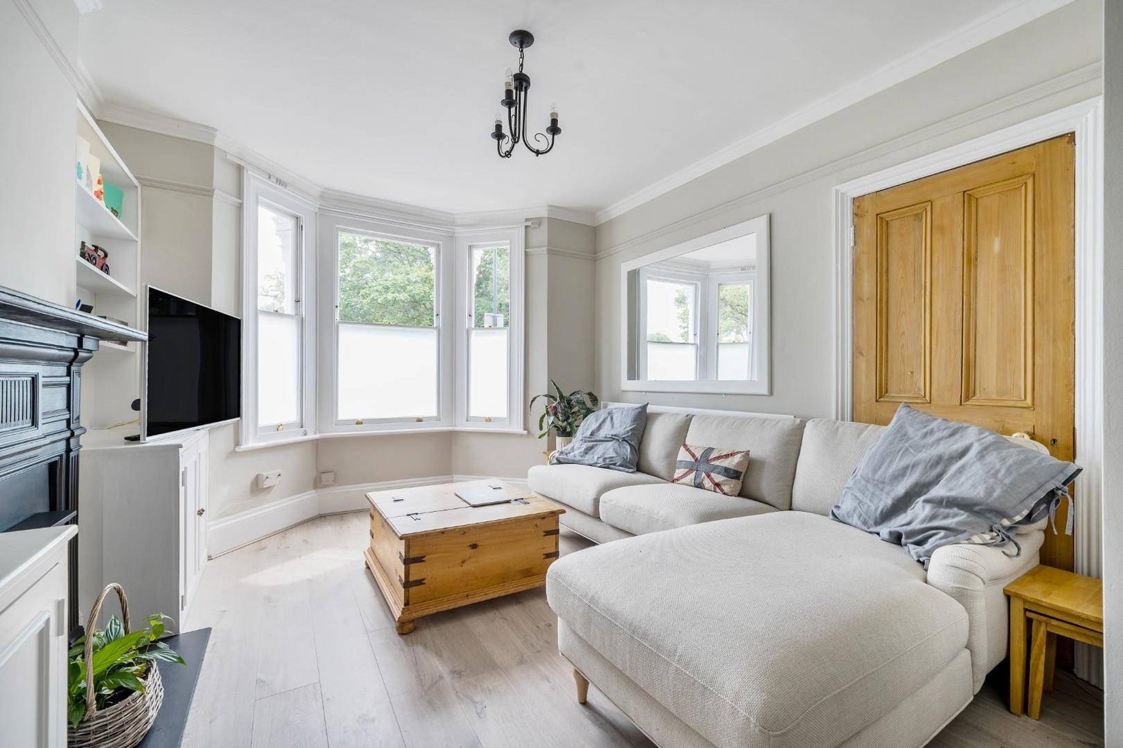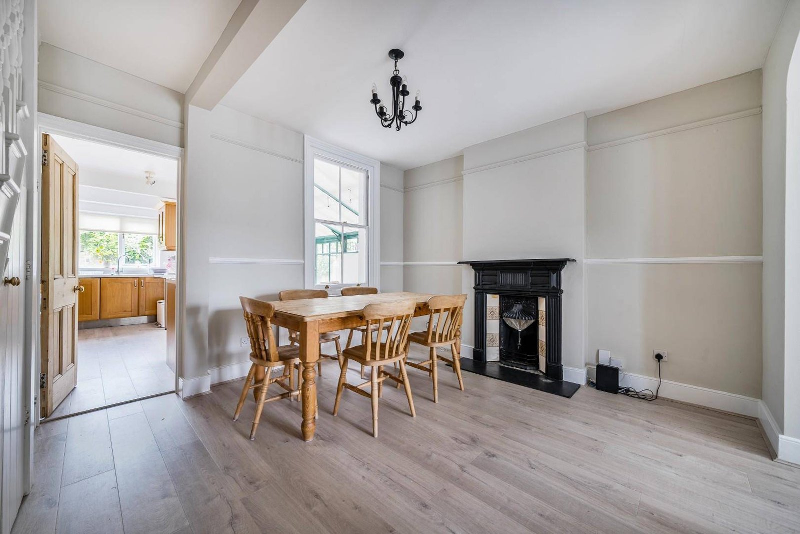 Arranged over three floors, the property boasts two spacious reception rooms with feature fireplaces, high ceilings, and storage cupboards. These lead to a generous open-plan kitchen and conservatory with French doors to the garden.